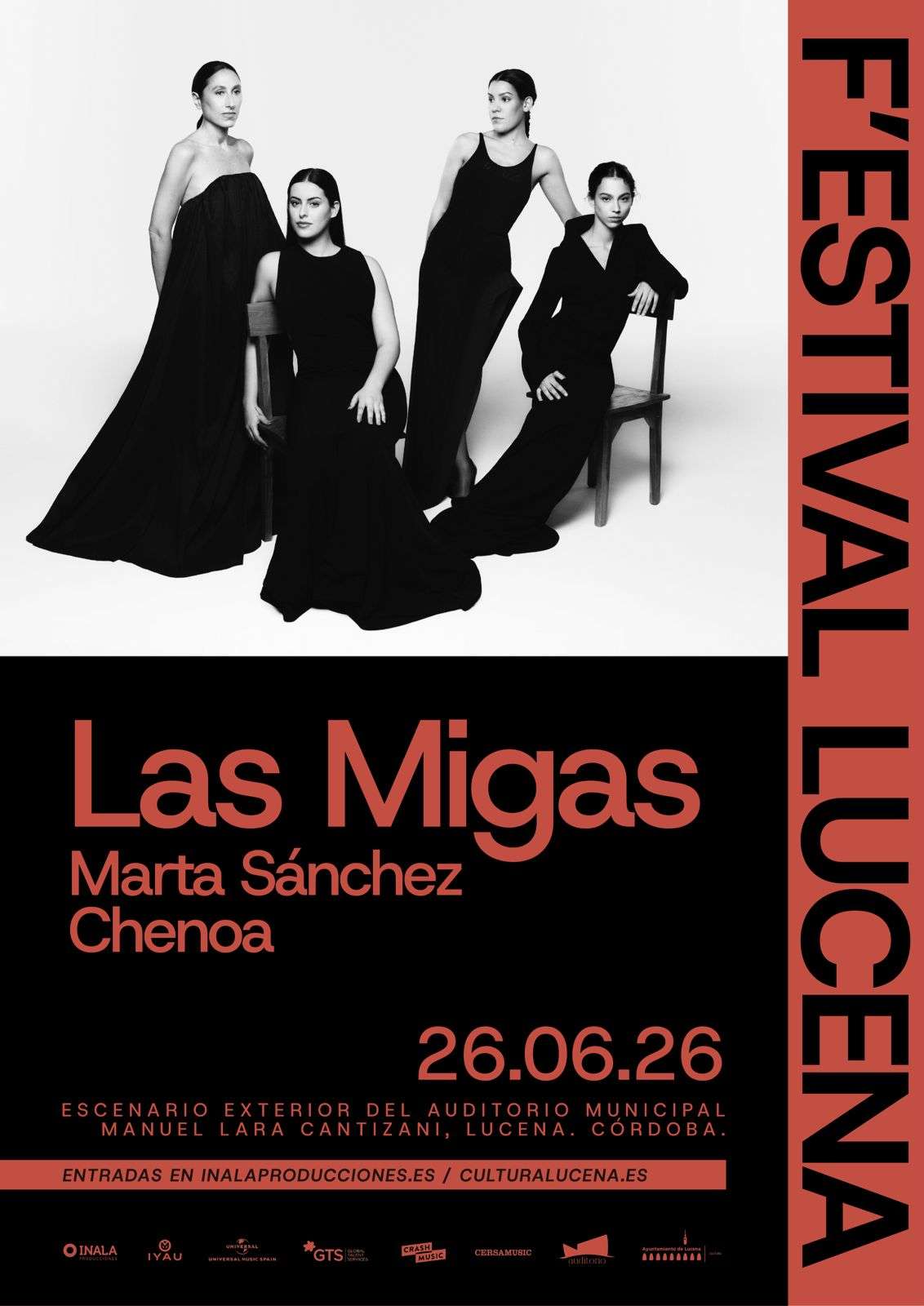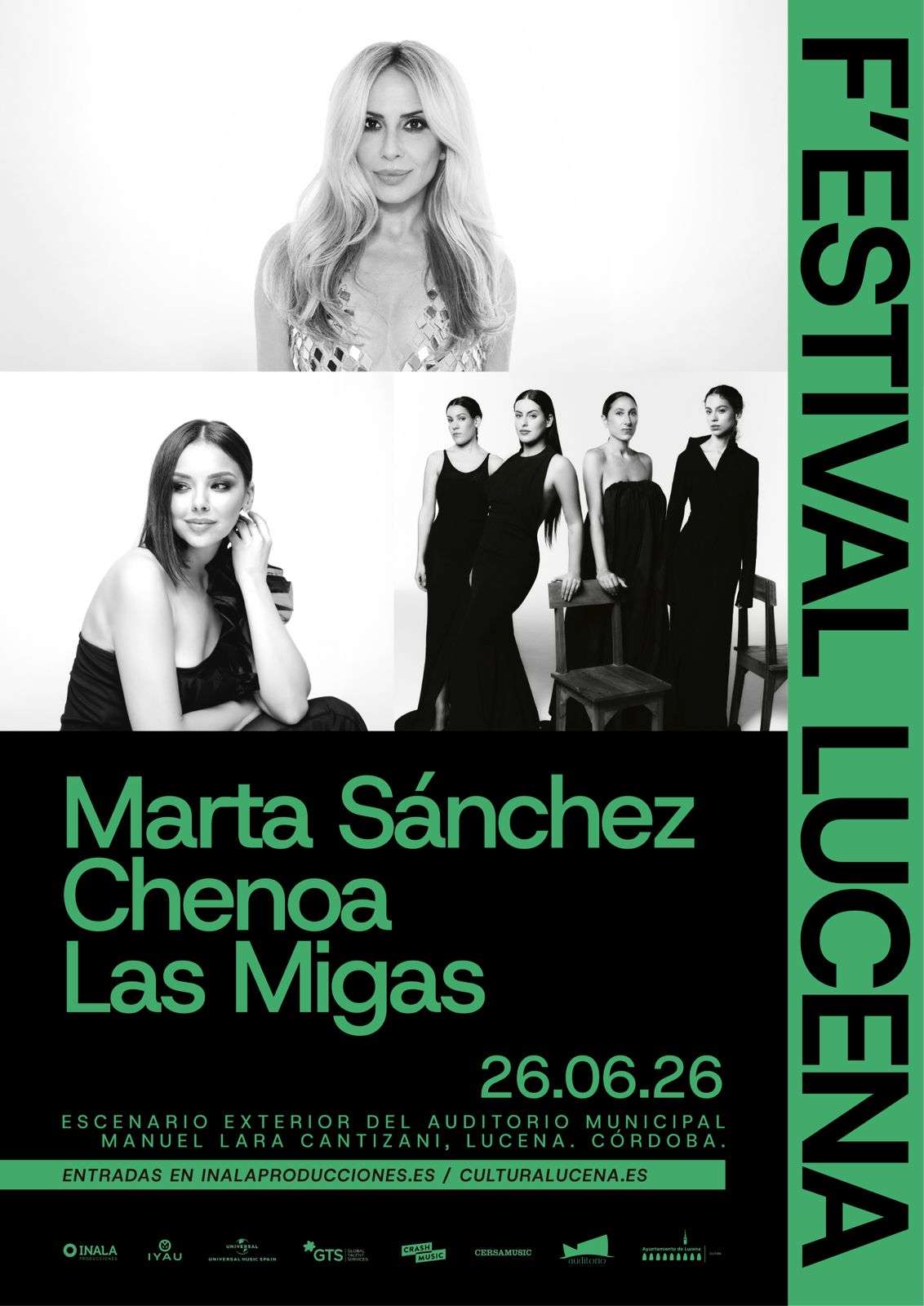 El ciclo F’Estival Lucena 2026 suma una nueva cita destacada a su programación con la presentación de un concierto que reunirá sobre el mismo escenario a Marta SánchezChenoa y Las Migas. El evento, organizado por la Delegación Municipal de Turismo, se celebrará el próximo 26 de julio en el espacio exterior del Auditorio Municipal Manuel Lara Cantizani.