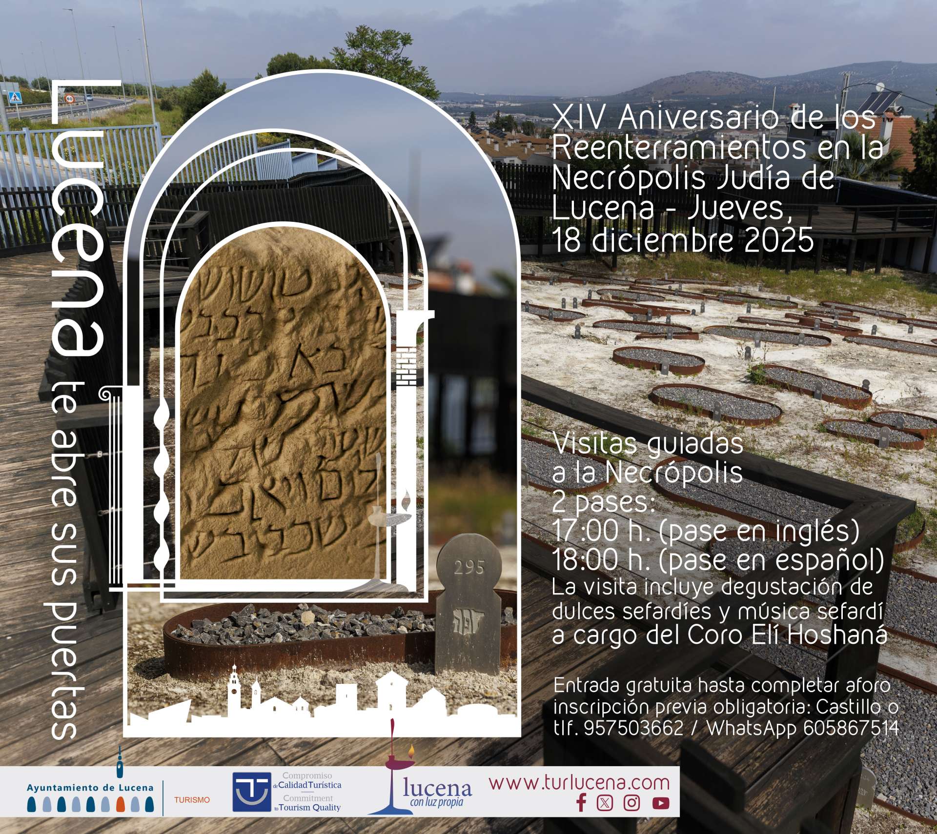 El JUEVES 18 de diciembre te invitamos a unirte la la conmemoración de este hecho histórico para Lucena y conocer así uno de los yacimientos arqueológicos más singulares de la Península Ibérica: la Necrópolis Judía de Lucena, antiguo espacio de enterramiento de la comunidad sefardí que habitó Eliossana y testigo del esplendor de la Perla de Sefarad.