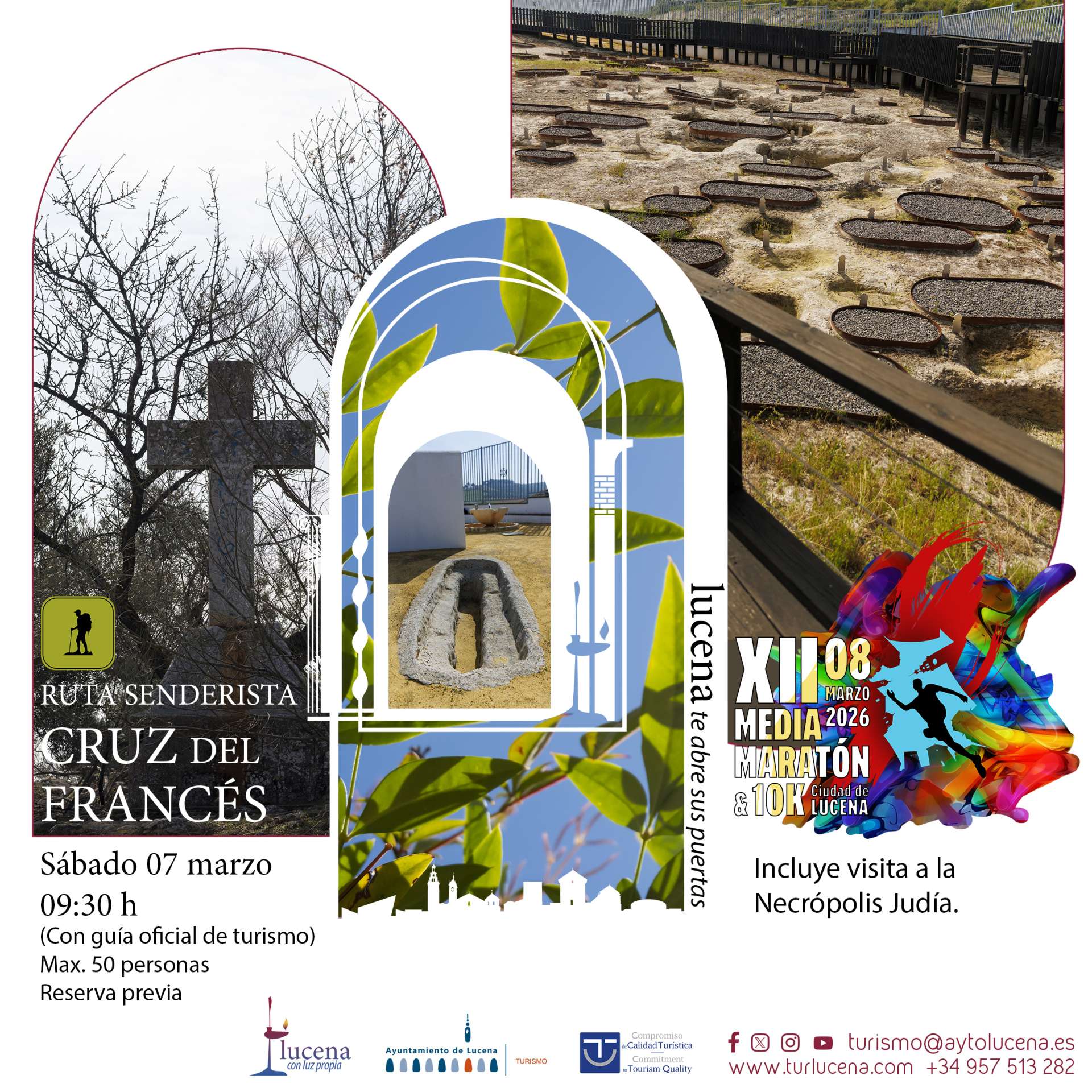 Con motivo de la XII Media Maratón Ciudad de Lucena celebraremos el sábdo 07 de marzo esta edición especial de la ruta senderista de la Cruz del Francés con entrada guiada a la Necrópolis Judía.