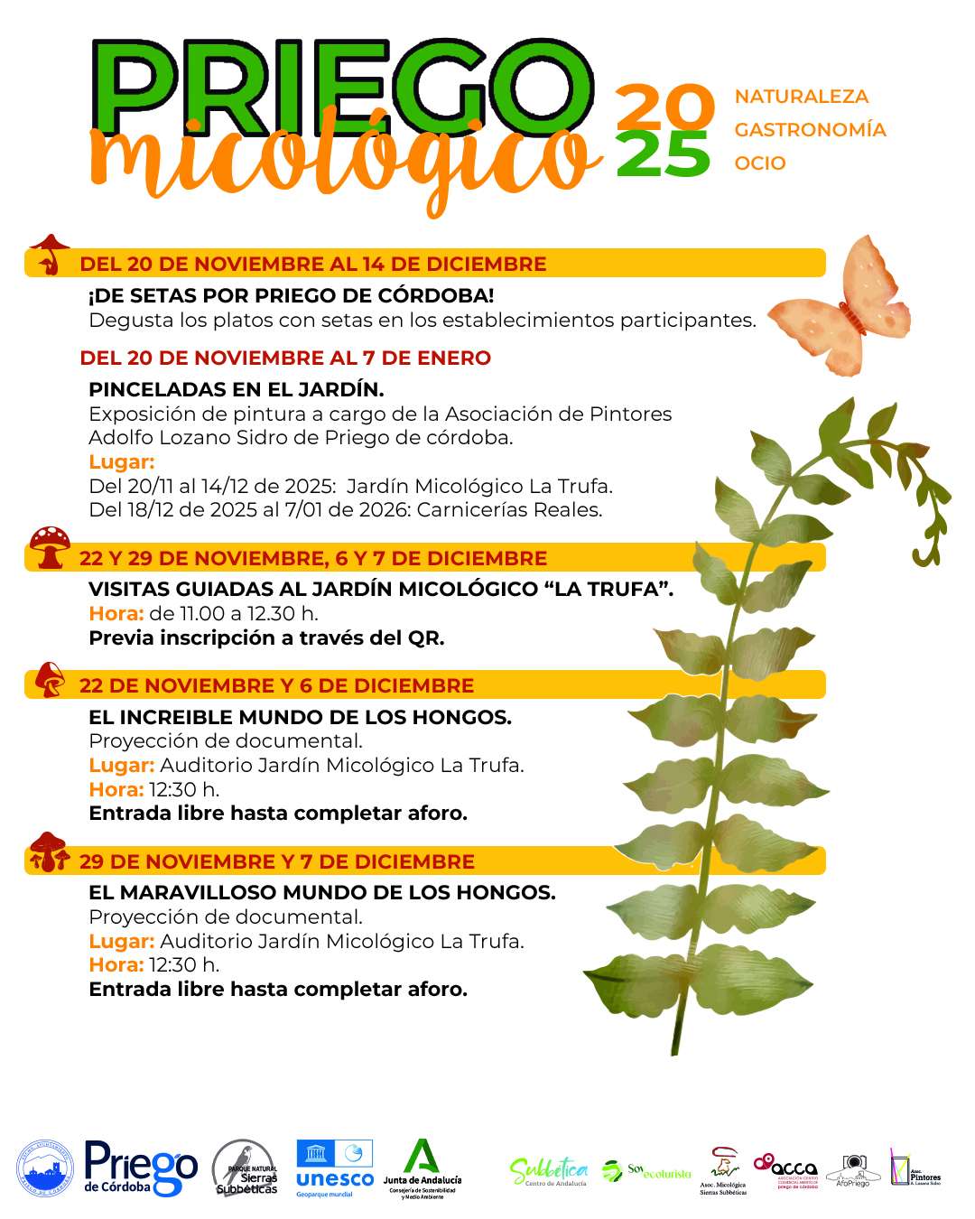 Acceda al programa completo del Priego Micológico 2025 e inscríbase en las actividades propuestas.